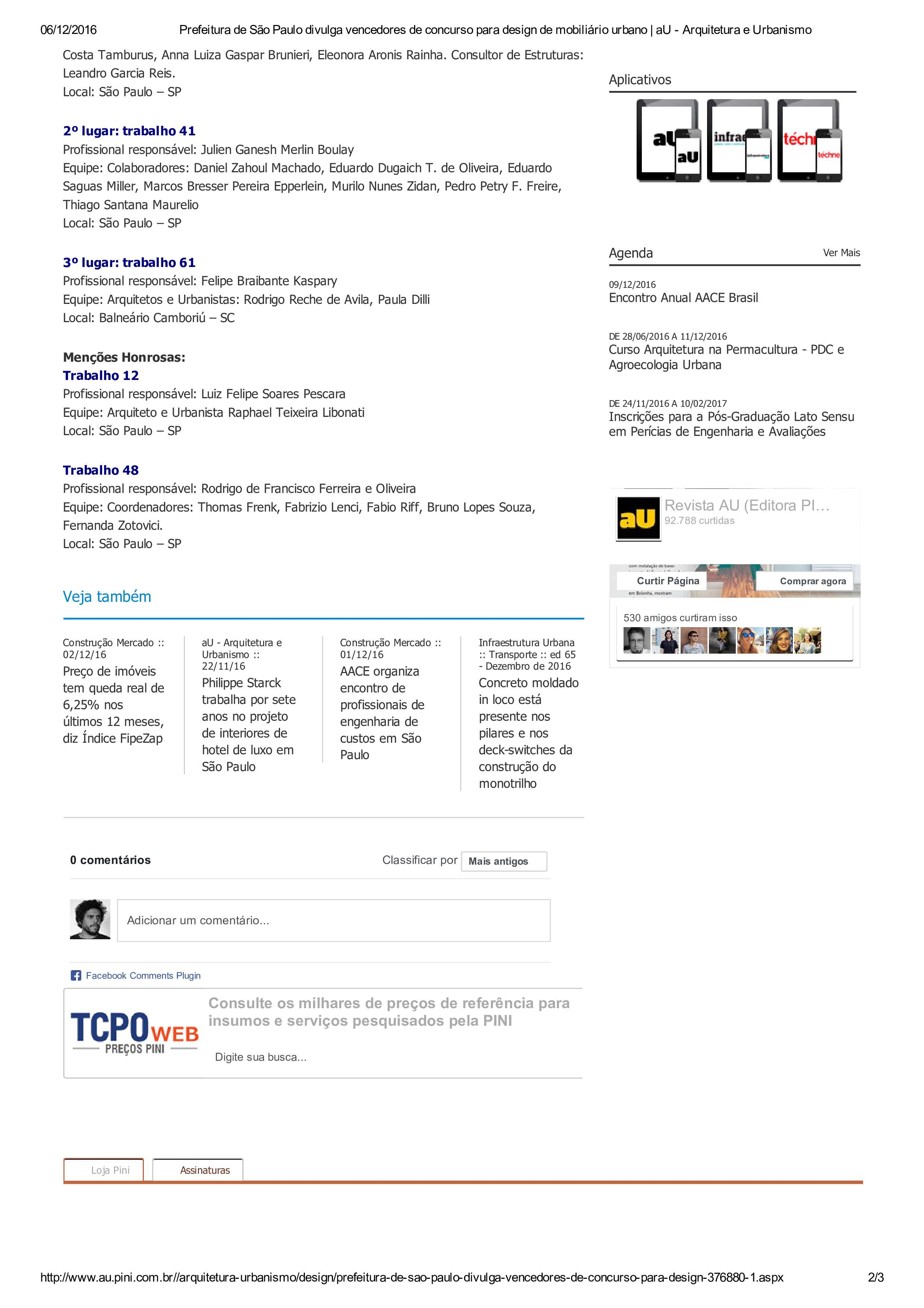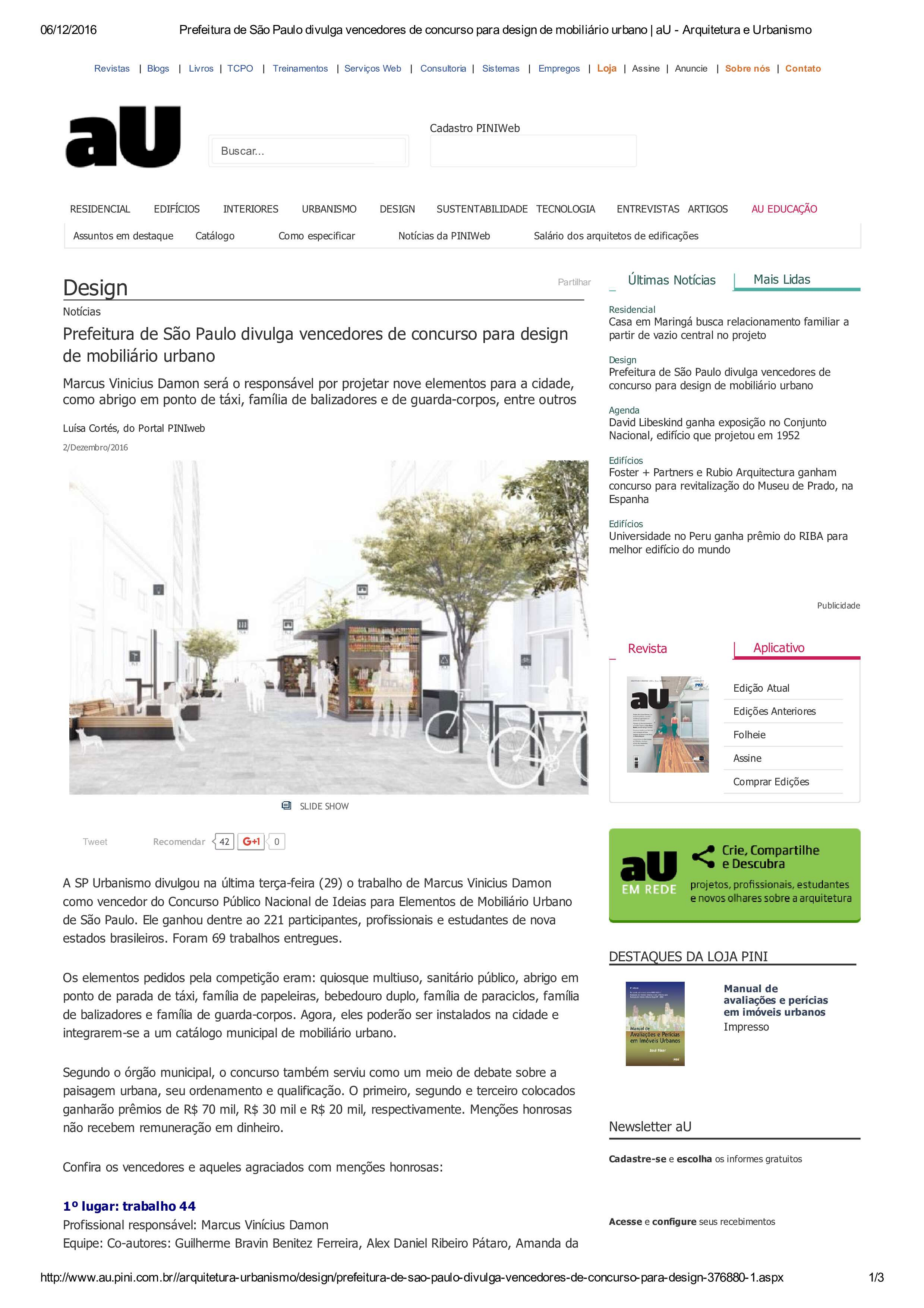 Revista AU | Prefeitura de São Paulo divulga vencedores de concurso para design de mobiliário urbano