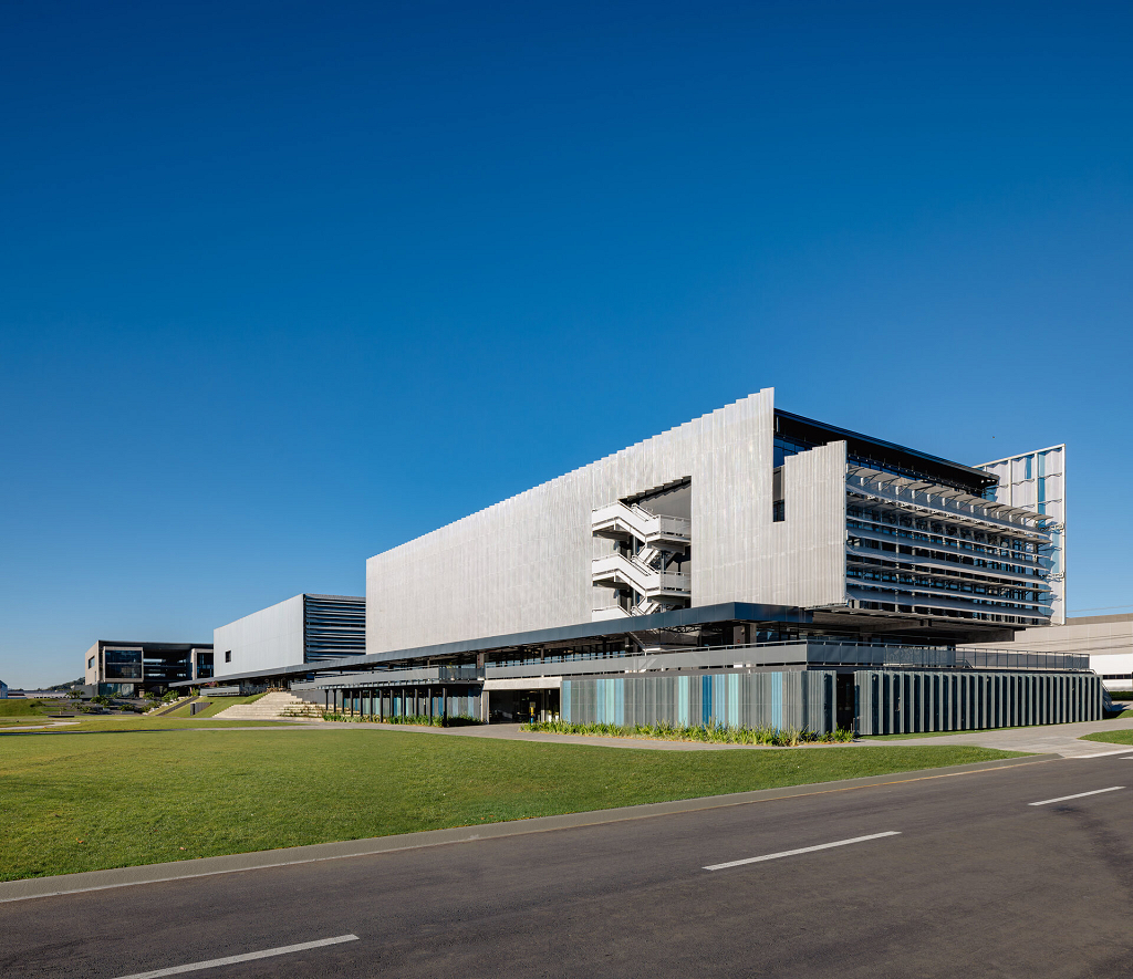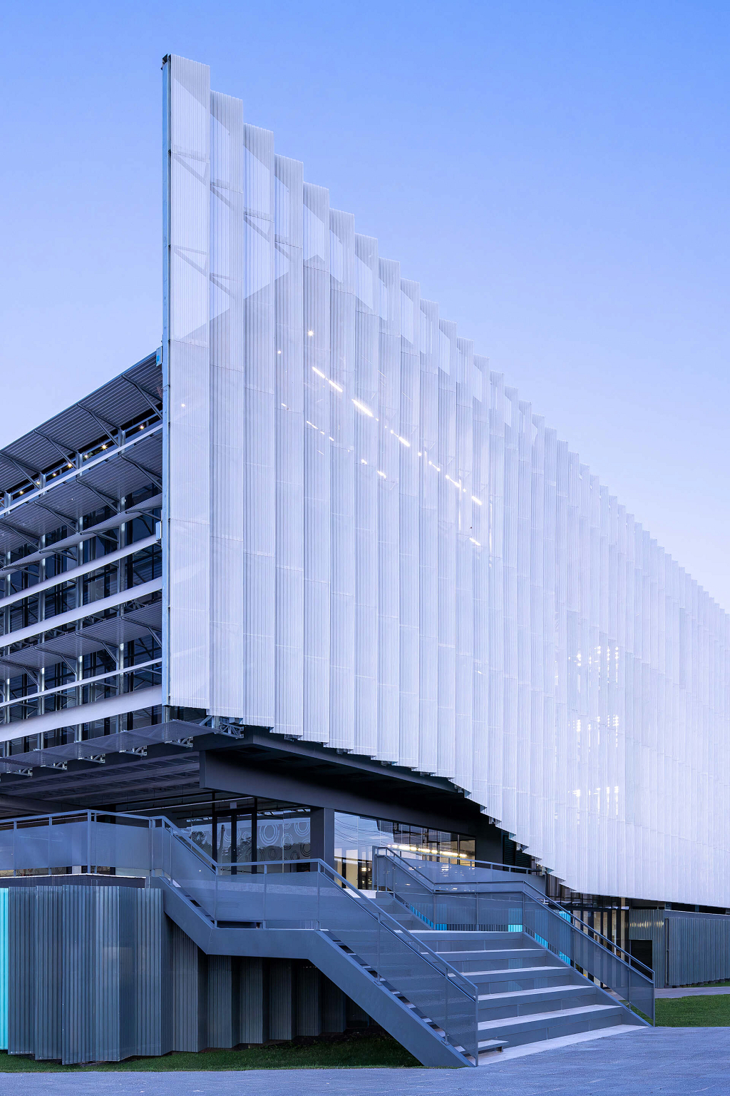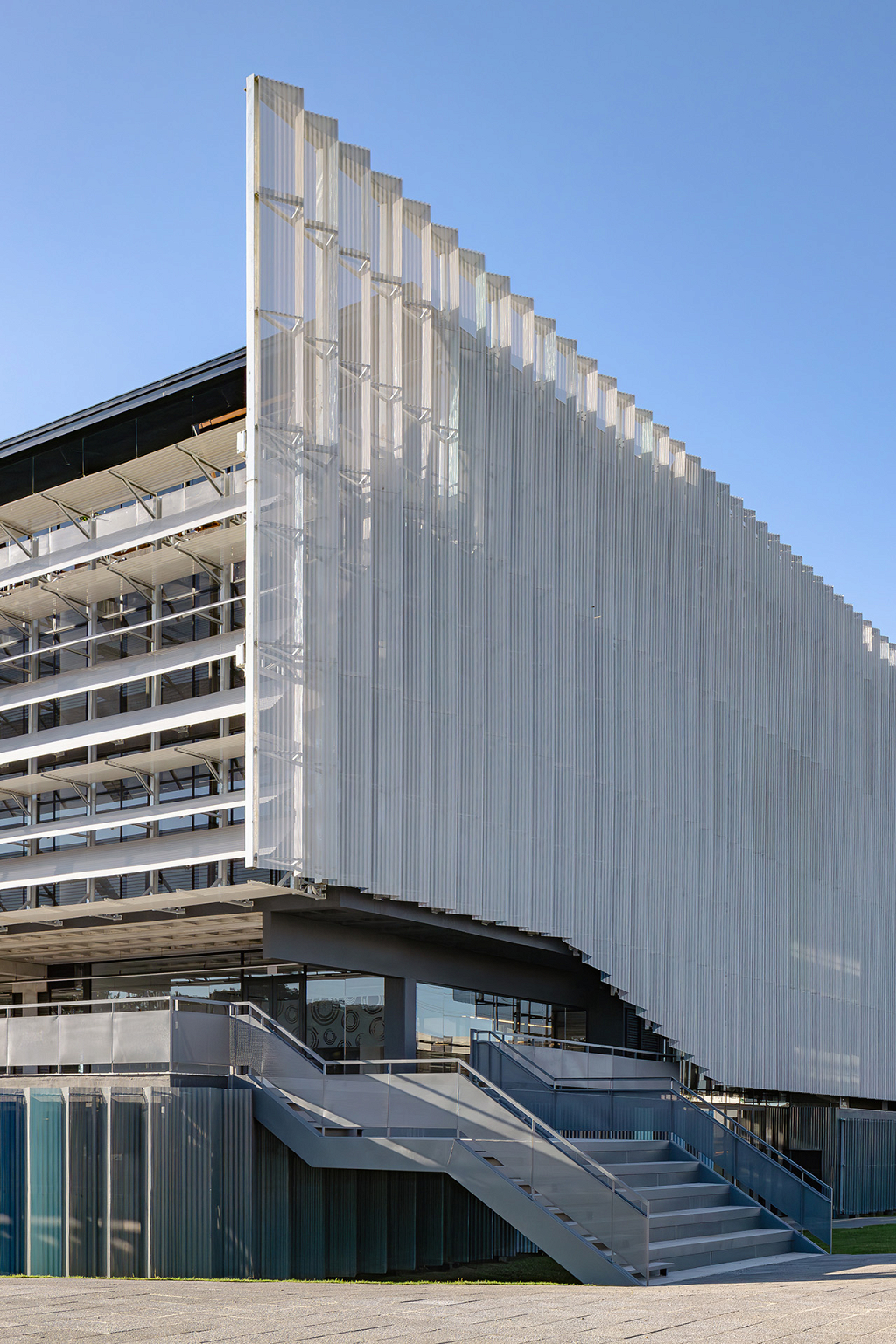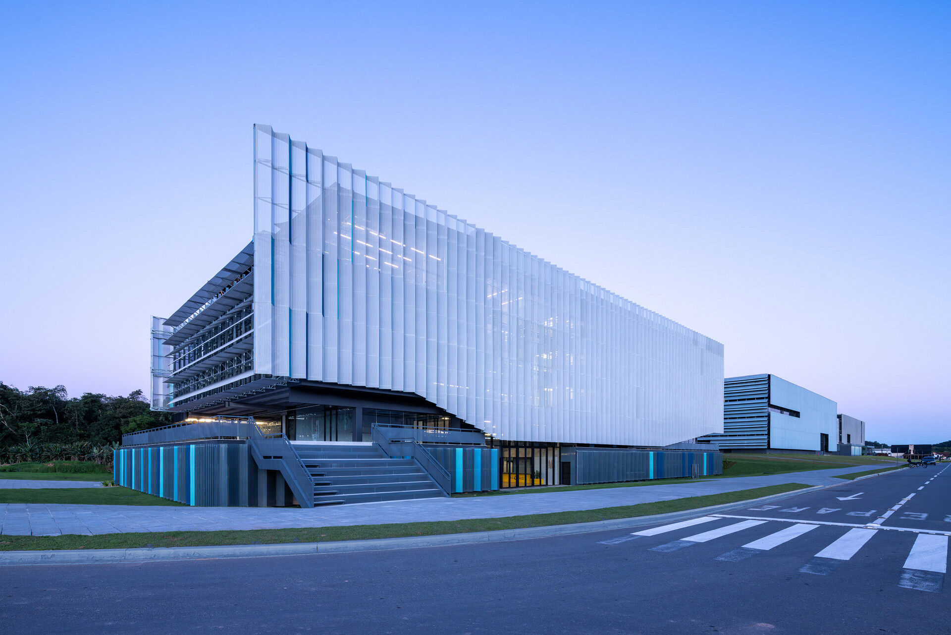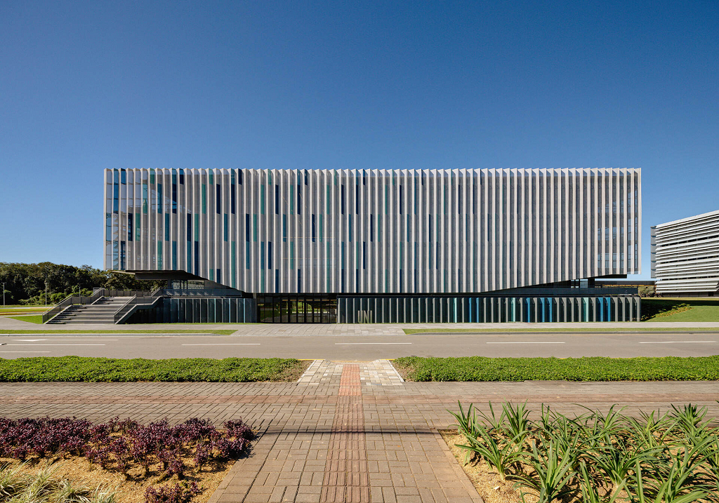 O átrio é a grande área de encontro do edifício. É onde as relações visuais dos trabalhadores e visitantes se intensificam. Todas as peças estruturais do edifício são pré-fabricadas, aliado ao uso de componentes construtivos industrializados em maior parte da edificação, o que permitirá uma obra rápida e parcialmente seca.