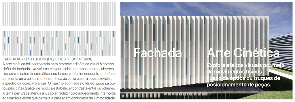 Na fachada, arte cinética foi incorporada para promover dinâmica visual.