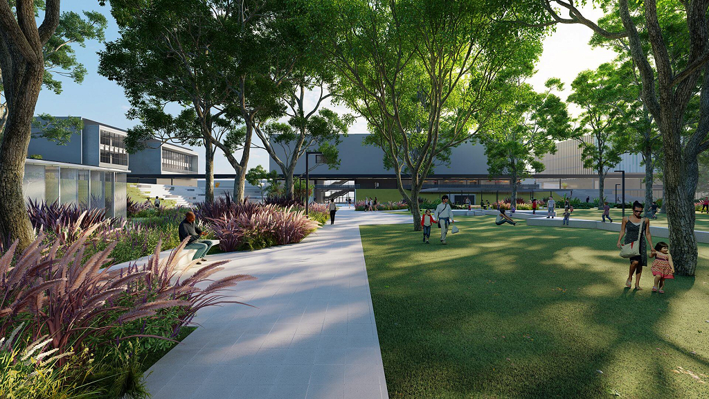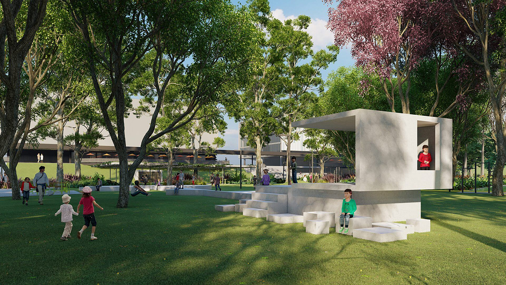 Piquenique, eventos, exposições ao ar livre, descanso, contemplação, exercícios físicos, meia quadra de basquete, playground
