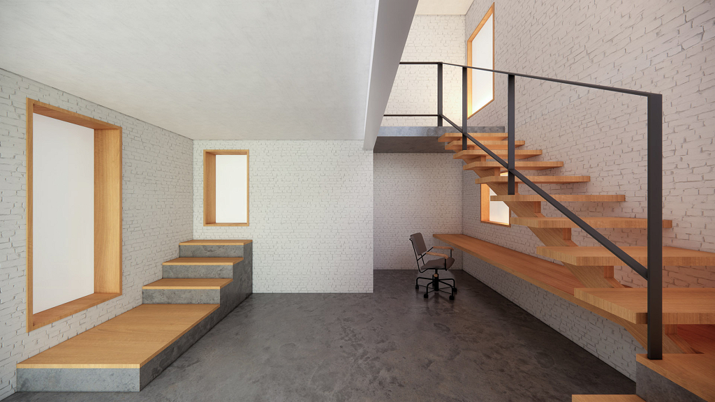 A passarela funciona como o principal elemento de circulação. Através desse eixo, são orientados os acessos desde o ambiente externo o interior da ampliação. O desenho toma partido da relação entre o acesso a partir da calçada, em cota superior, e desnível natural do terreno, em declive, buscando criar conforto e despertar sensações para quem passeio pela casa.