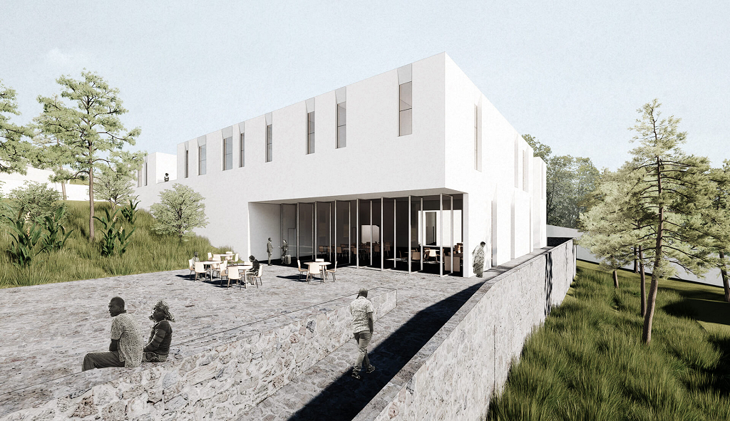 A proposta para o centro odontológico HOPE, em Kigali, capital da Ruanda, relaciona-se com o entorno e a paisagem de maneira delicada. Através do desenho de uma linha ordenadora de caminhos e programas, o complexo foi pensado para melhor atender ao edital vencendo o desnível de 34 metros de modo acessível.